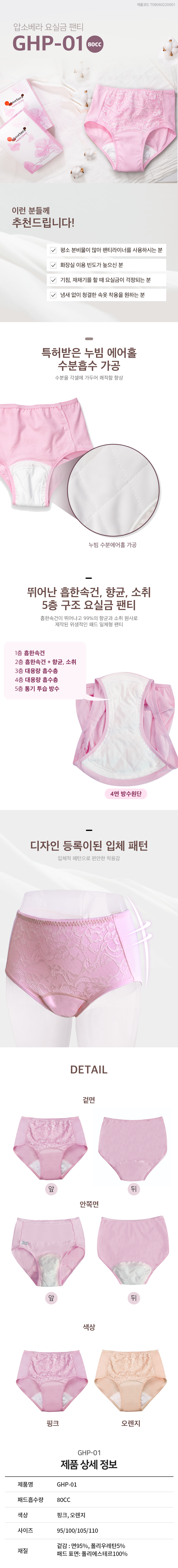 요실금팬티 : 일회용이 아닌 패드가 부착되어 세탁 후 반복사용이 가능한 일반속옷형태의 제품