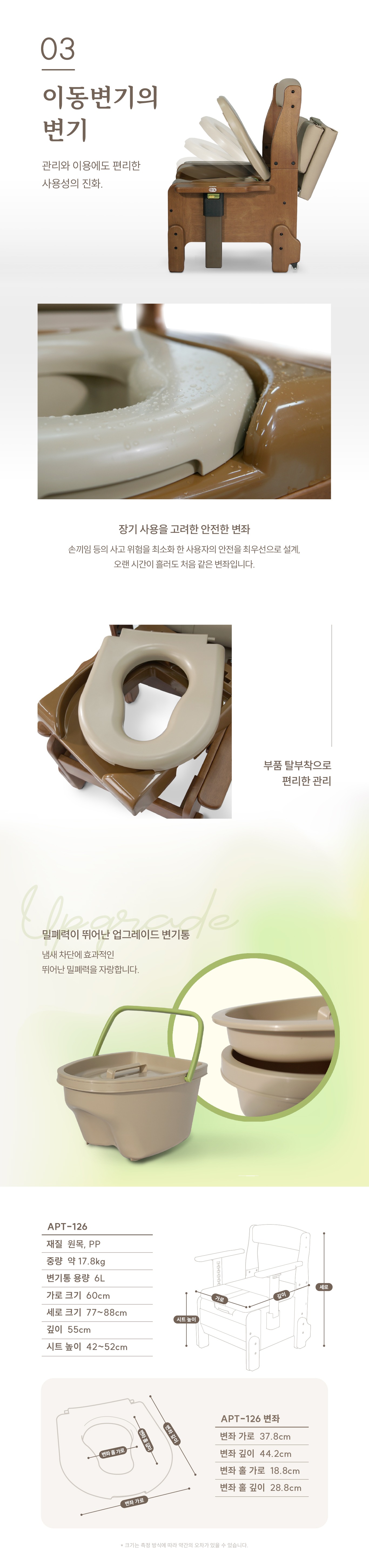 이동변기 : 화장실로 이동하기 어려운 경우 용변을 쉽고 안전하게 볼 수 있는 용품