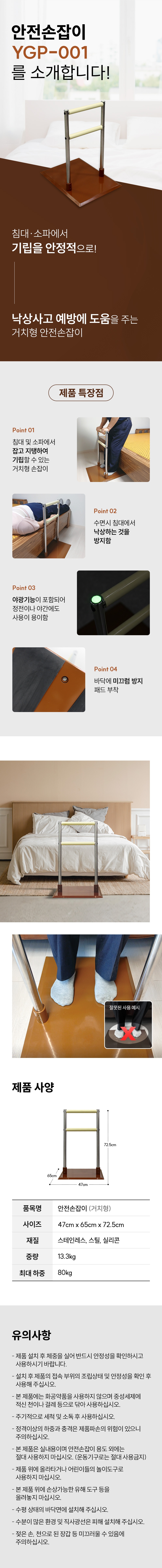 안전손잡이 : 실내에 부착하는 지지용 손잡이와 화장실 거치용 손잡이 등으로 안전사고 예방 및 자립환경 조성을 위한 용품