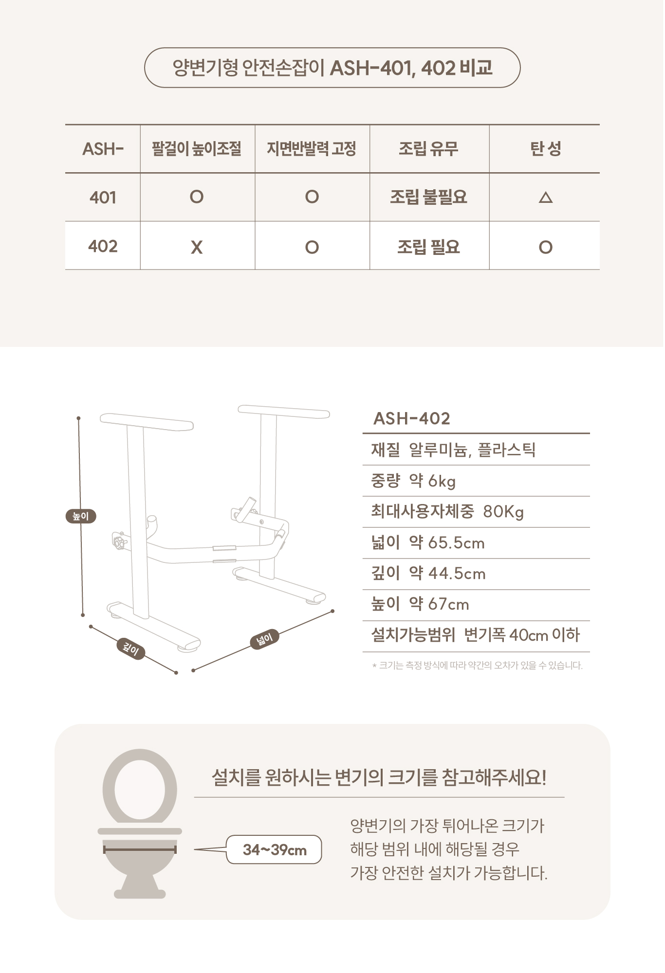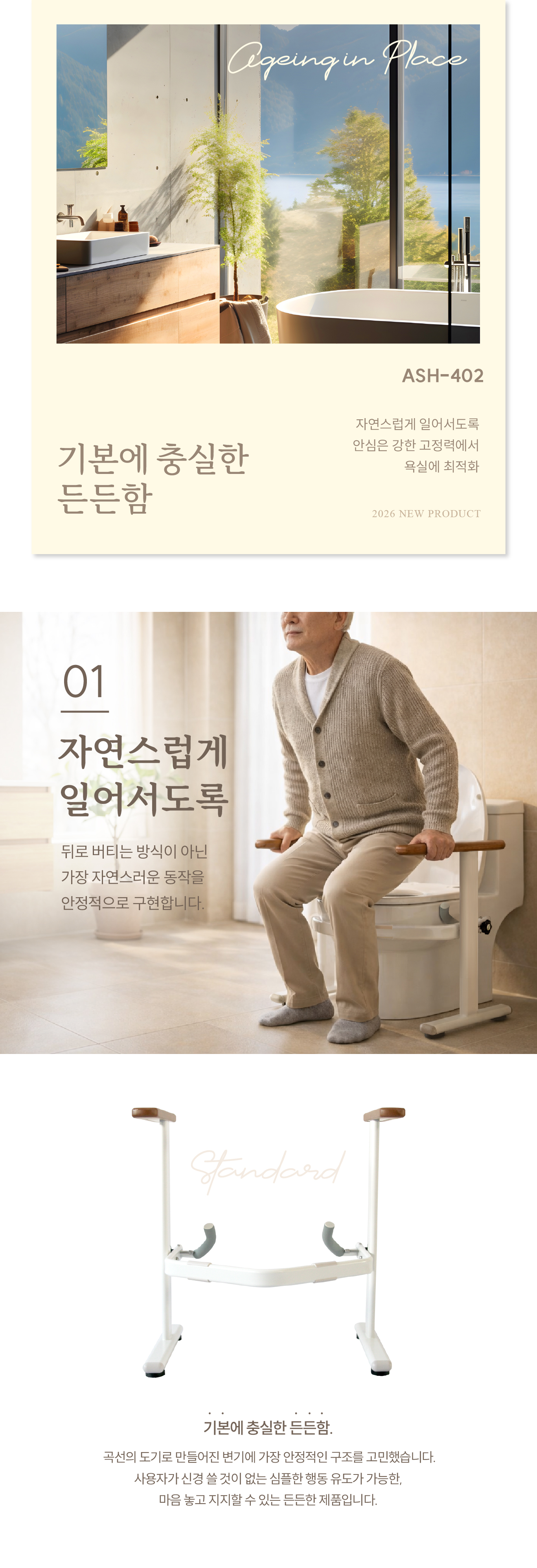 안전손잡이 : 실내에 부착하는 지지용 손잡이와 화장실 거치용 손잡이 등으로 안전사고 예방 및 자립환경 조성을 위한 용품