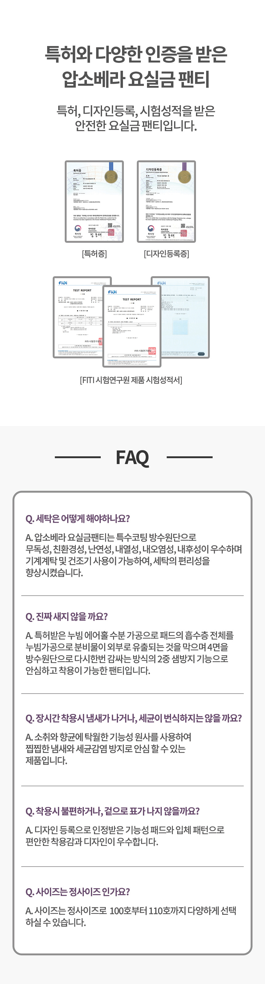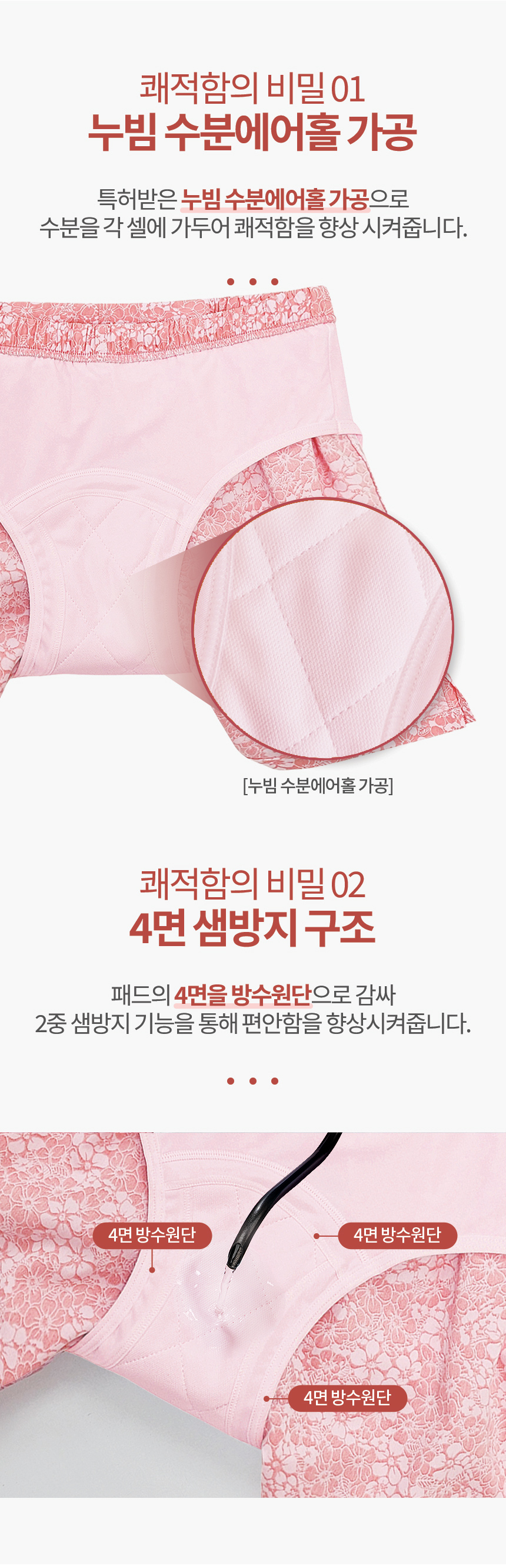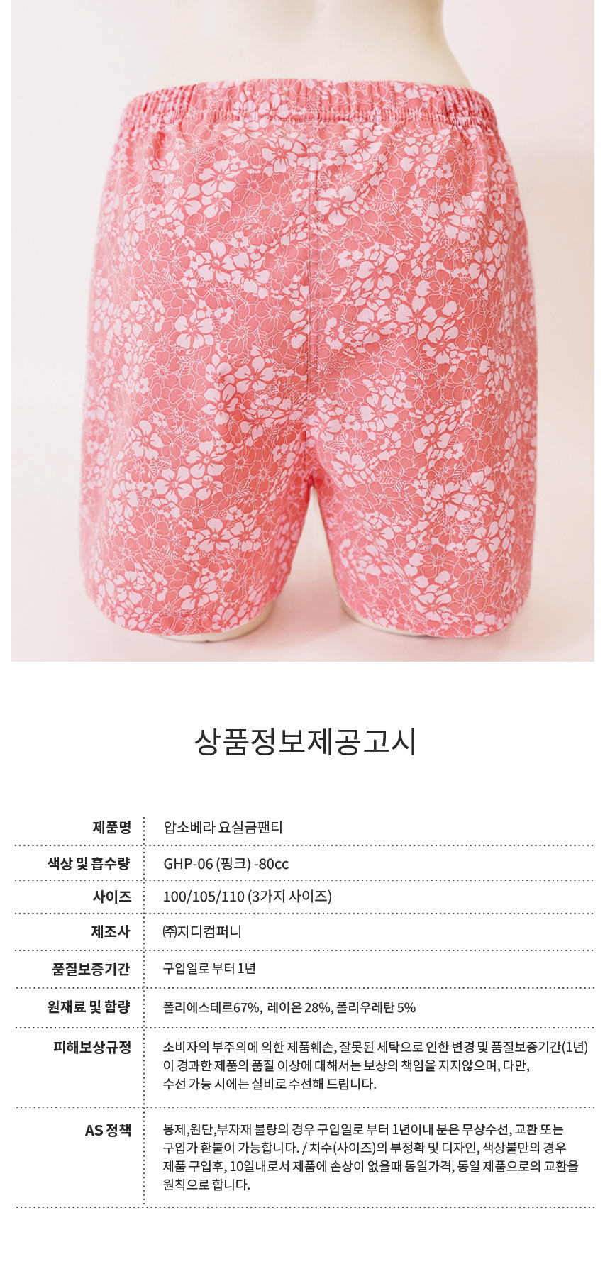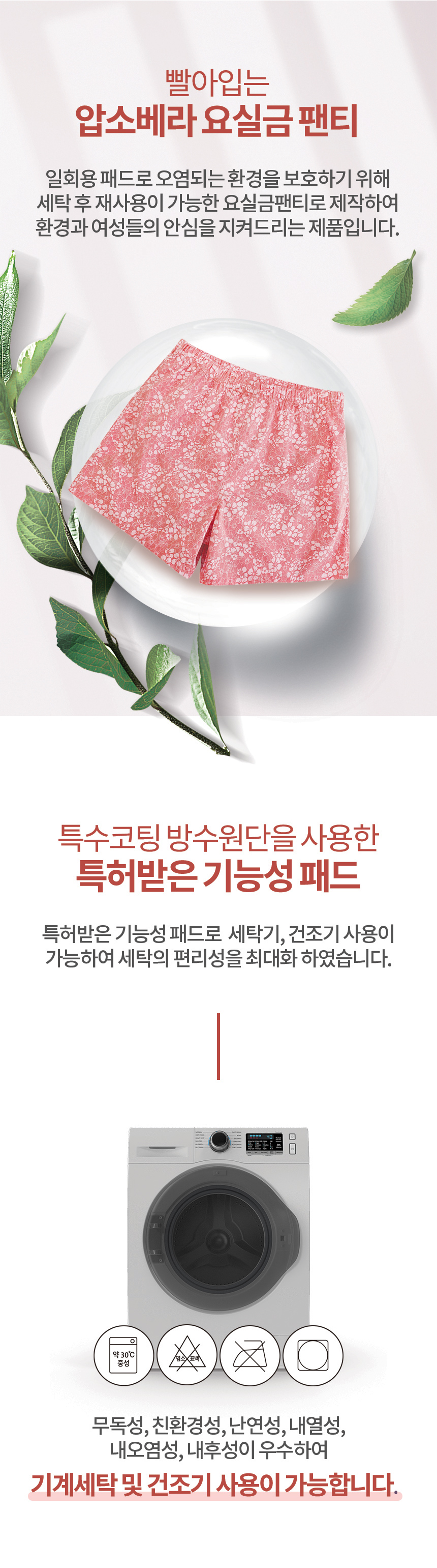 요실금팬티 : 일회용이 아닌 패드가 부착되어 세탁 후 반복사용이 가능한 일반속옷형태의 제품