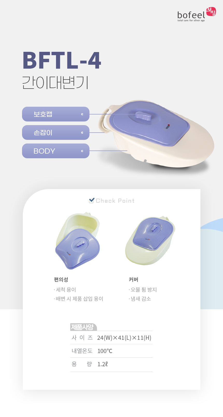 간이변기 : 와상상태, 소변조절 등이 어려운 경우 용변을 쉽고 안전하게 볼 수 있는 용품