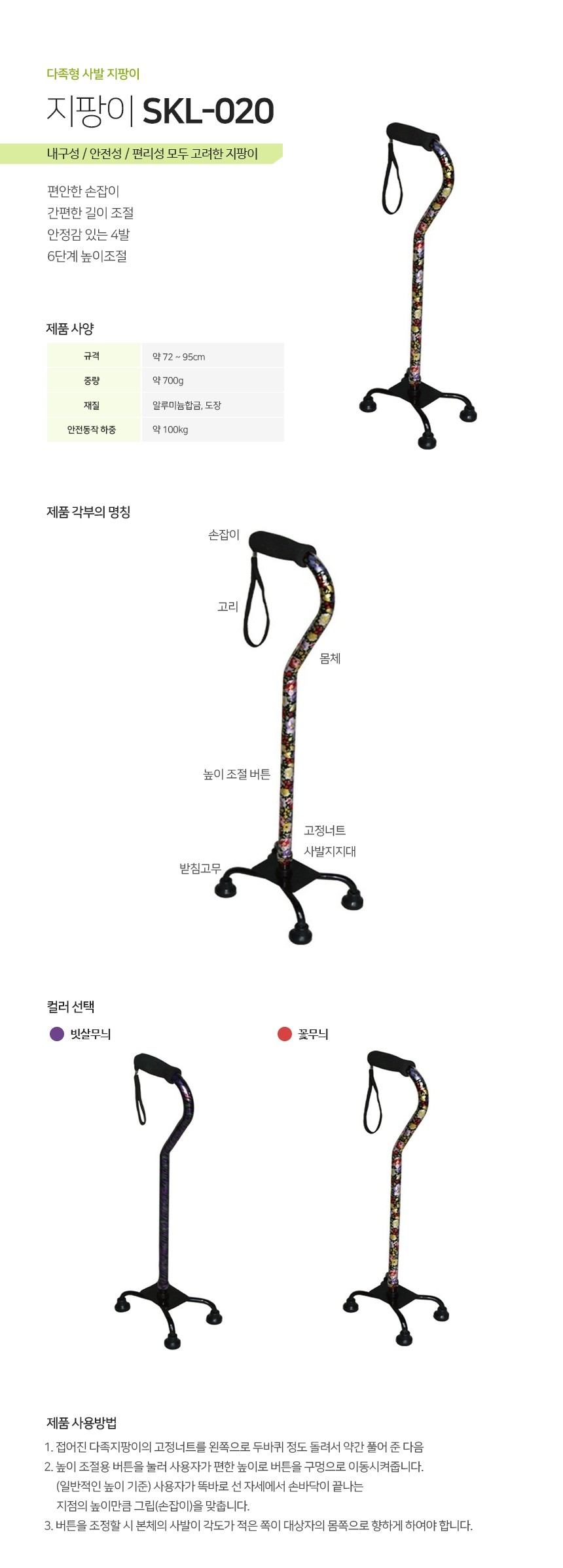 지팡이 : 보행 시 도움을 얻기 위하여 짚는 지팡이