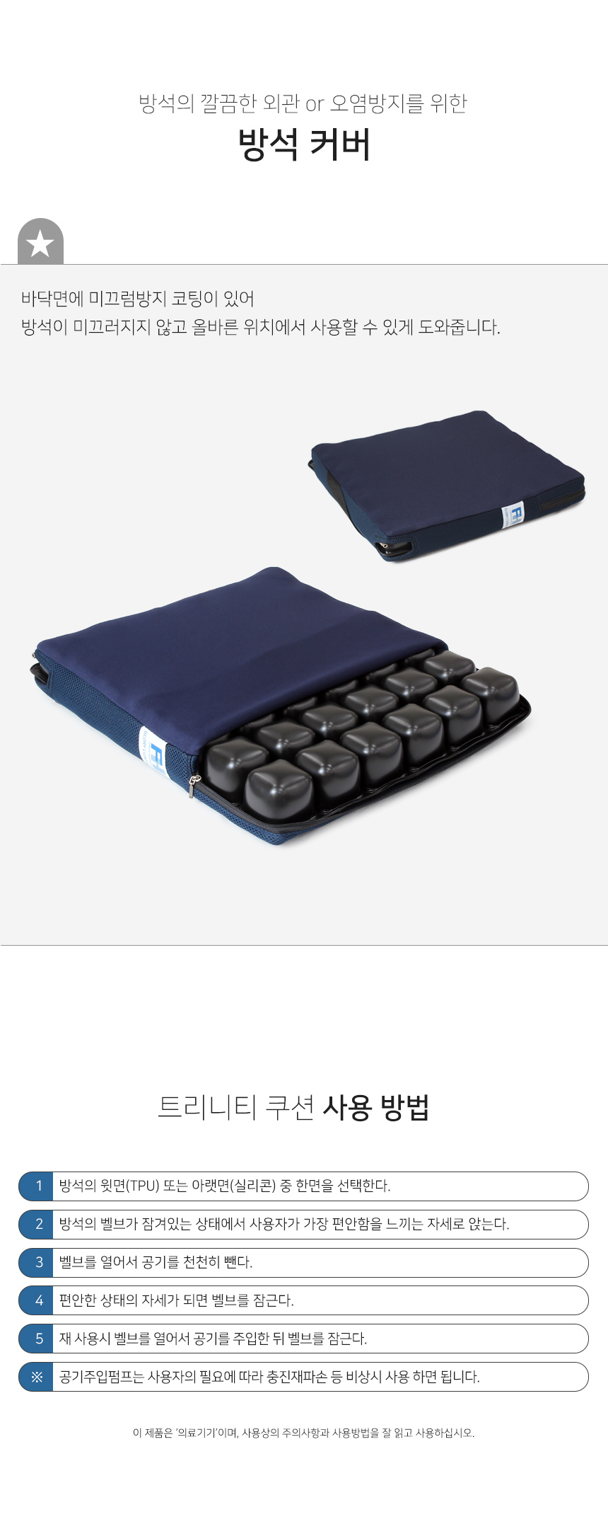 욕창예방방석 : 장시간 휠체어 등에 앉아 있을 경우 발생할 수 있는 욕창을 예방하기위해 깔아두는 방석