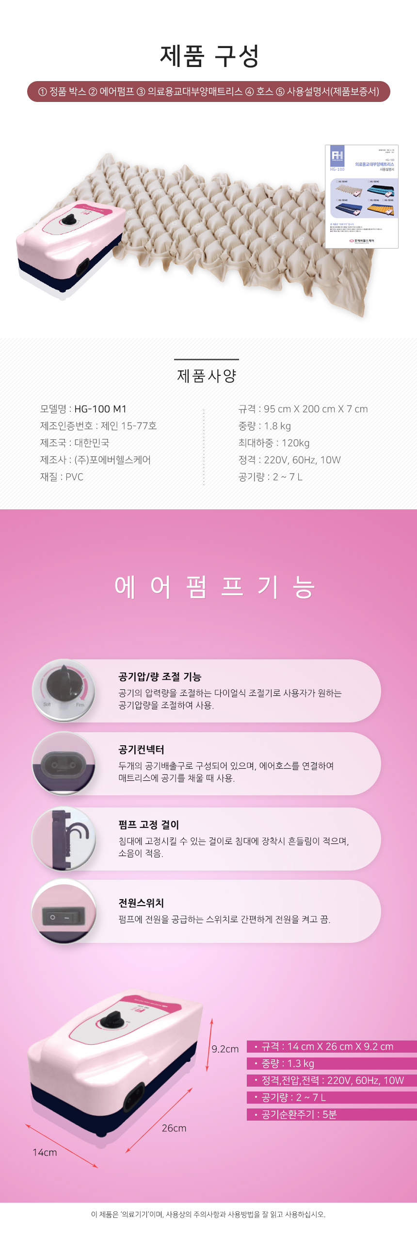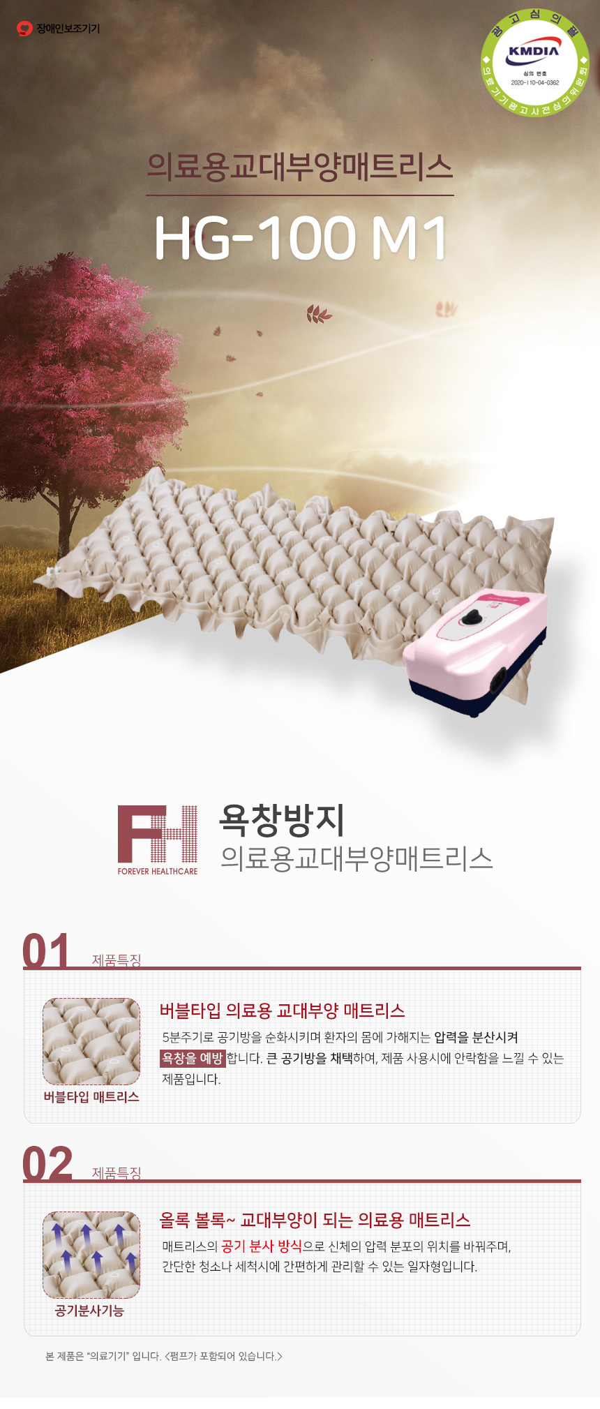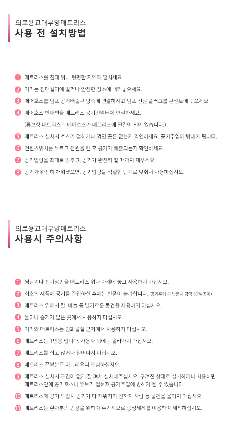 욕창예방매트리스 : 체중을 분산하고 통풍을 원활하게하여 장시간 한 자세로 누워있을 경우 발생할 수 있는 욕창을 예방하기 위한 매트리스