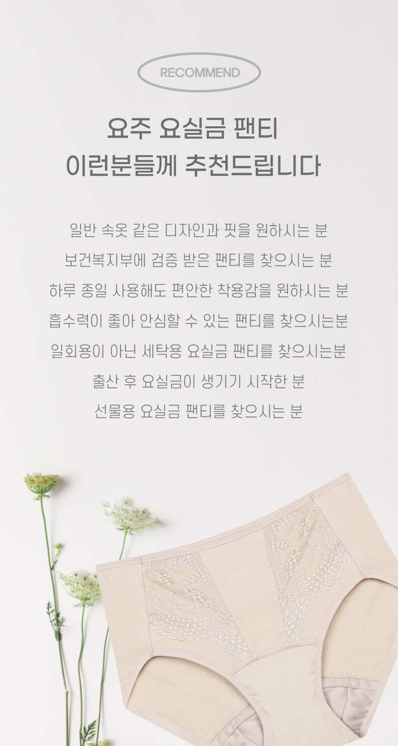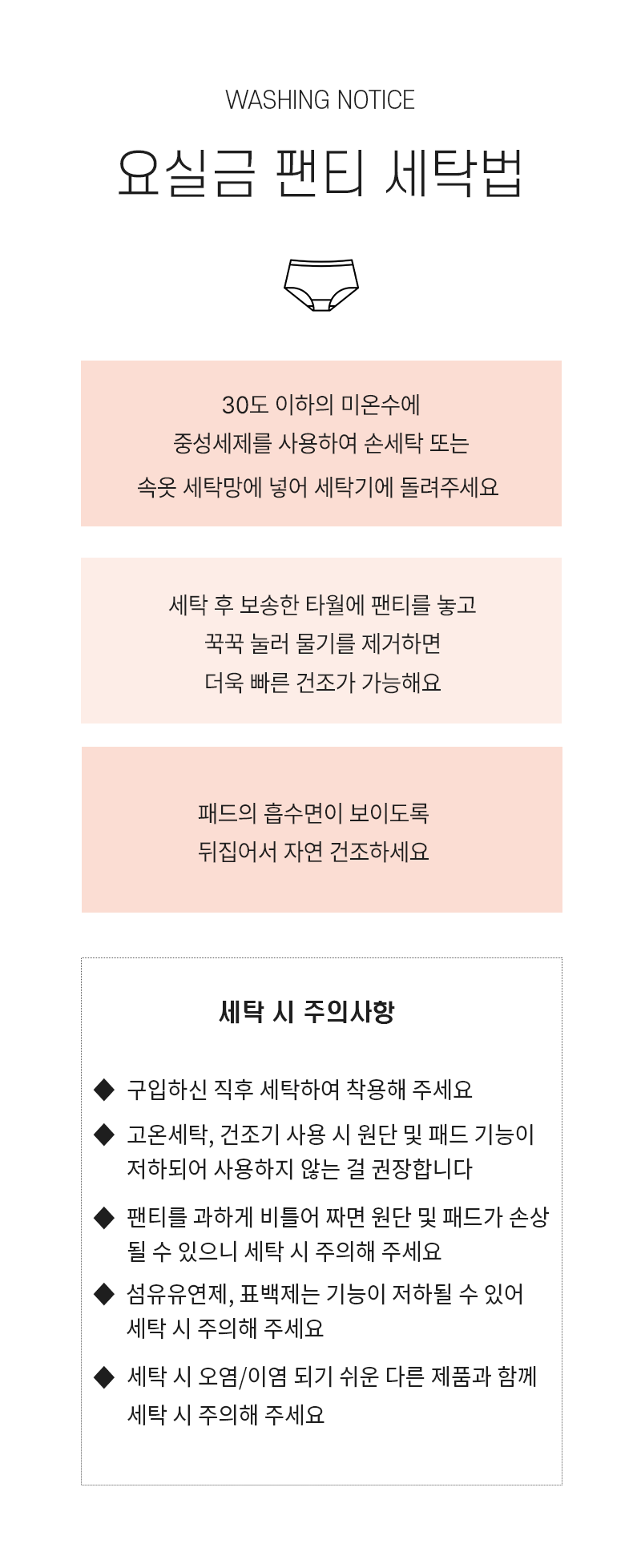 요실금팬티 : 일회용이 아닌 패드가 부착되어 세탁 후 반복사용이 가능한 일반속옷형태의 제품
