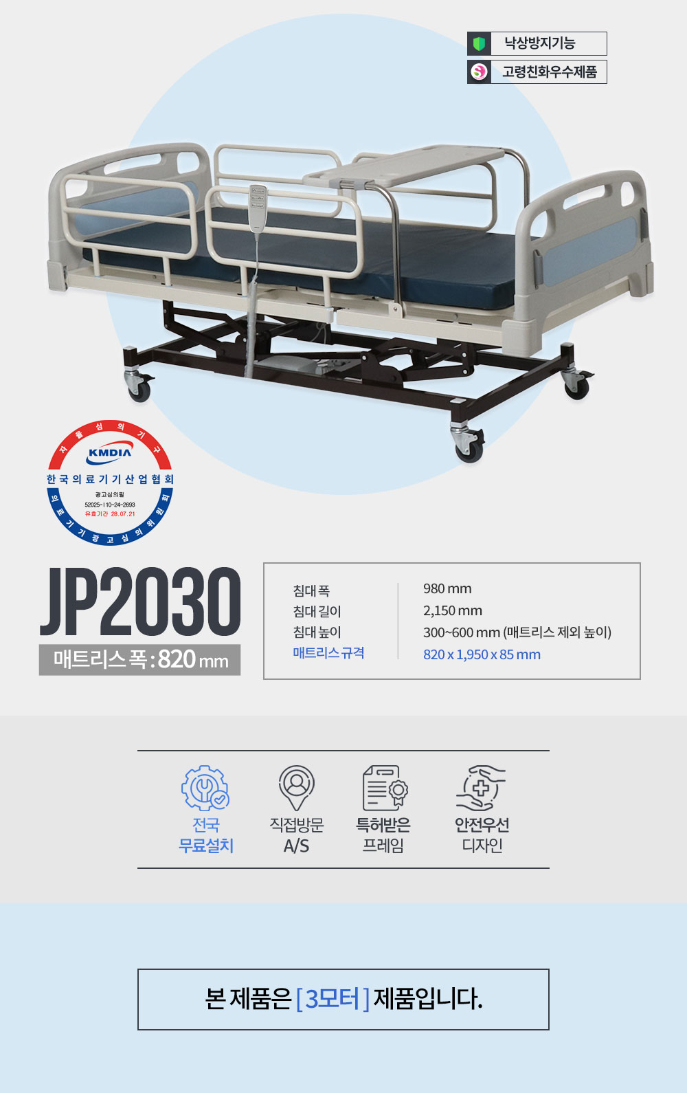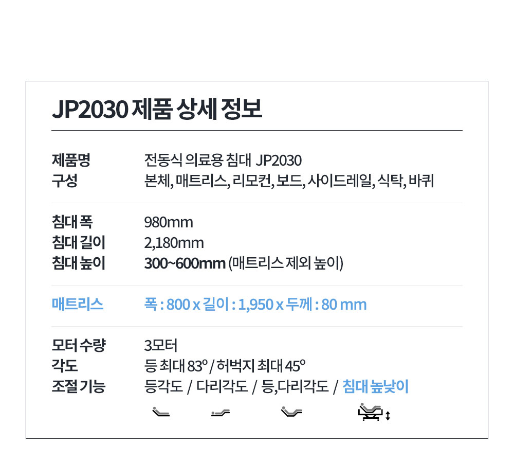 전동침대 : 누운 자세에서 혼자 일어나 앉지 못하는 경우 전동으로 상반신을 일으킬 수 있는 침대