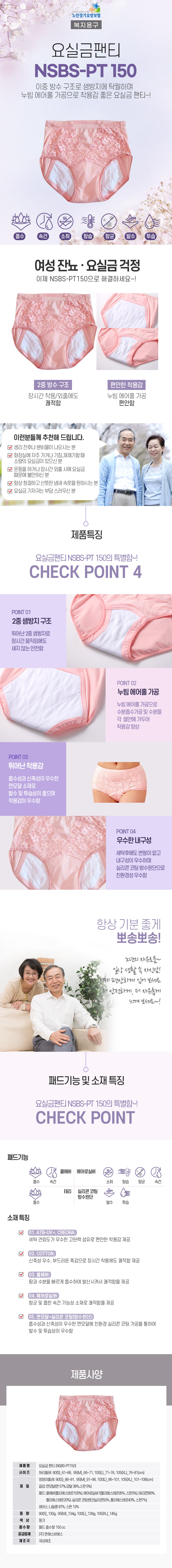 요실금팬티 : 일회용이 아닌 패드가 부착되어 세탁 후 반복사용이 가능한 일반속옷형태의 제품